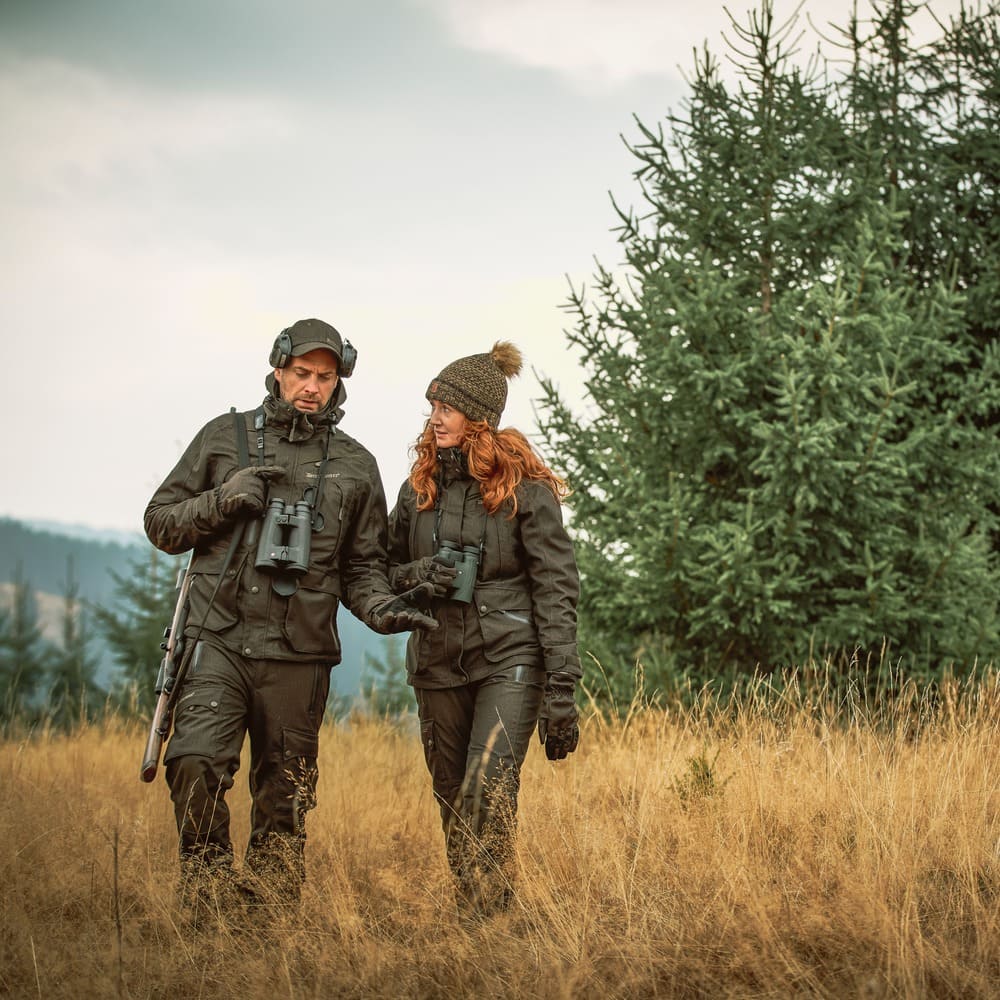 - Jagdjacken und -hosen: Hochwertige Materialien, die wetterfest, geräuscharm und atmungsaktiv sind, sorgen für optimalen Komfort und Schutz.