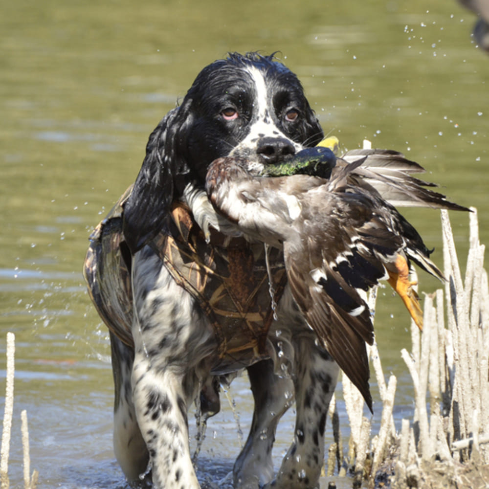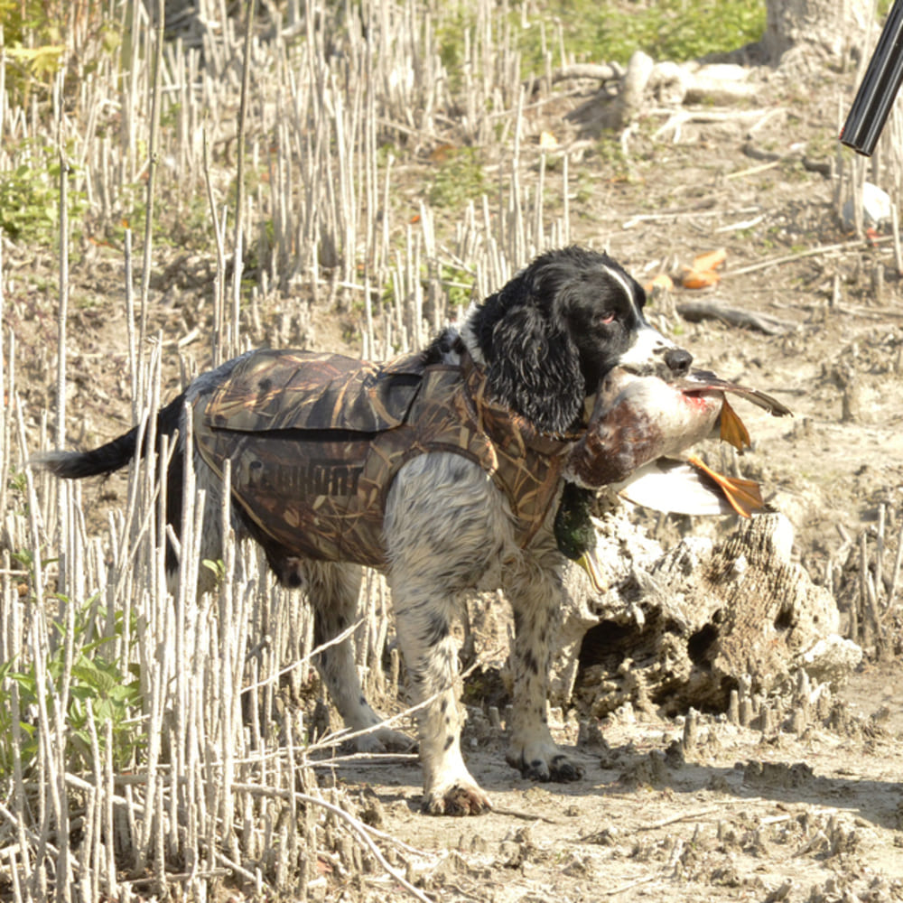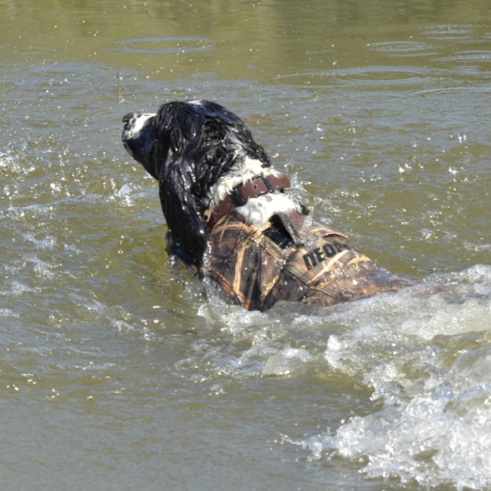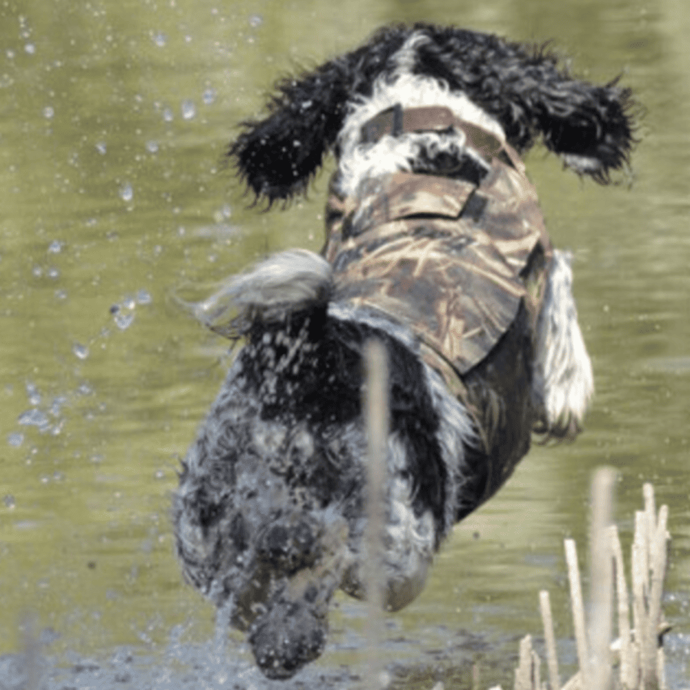 Diese speziell für die Jagd im Wasser entwickelte Schwimmweste kombiniert Schutz, Komfort und Tarnung und unterstützt deinen Hund bei anspruchsvollen Einsätzen im Schilf und Gewässer.