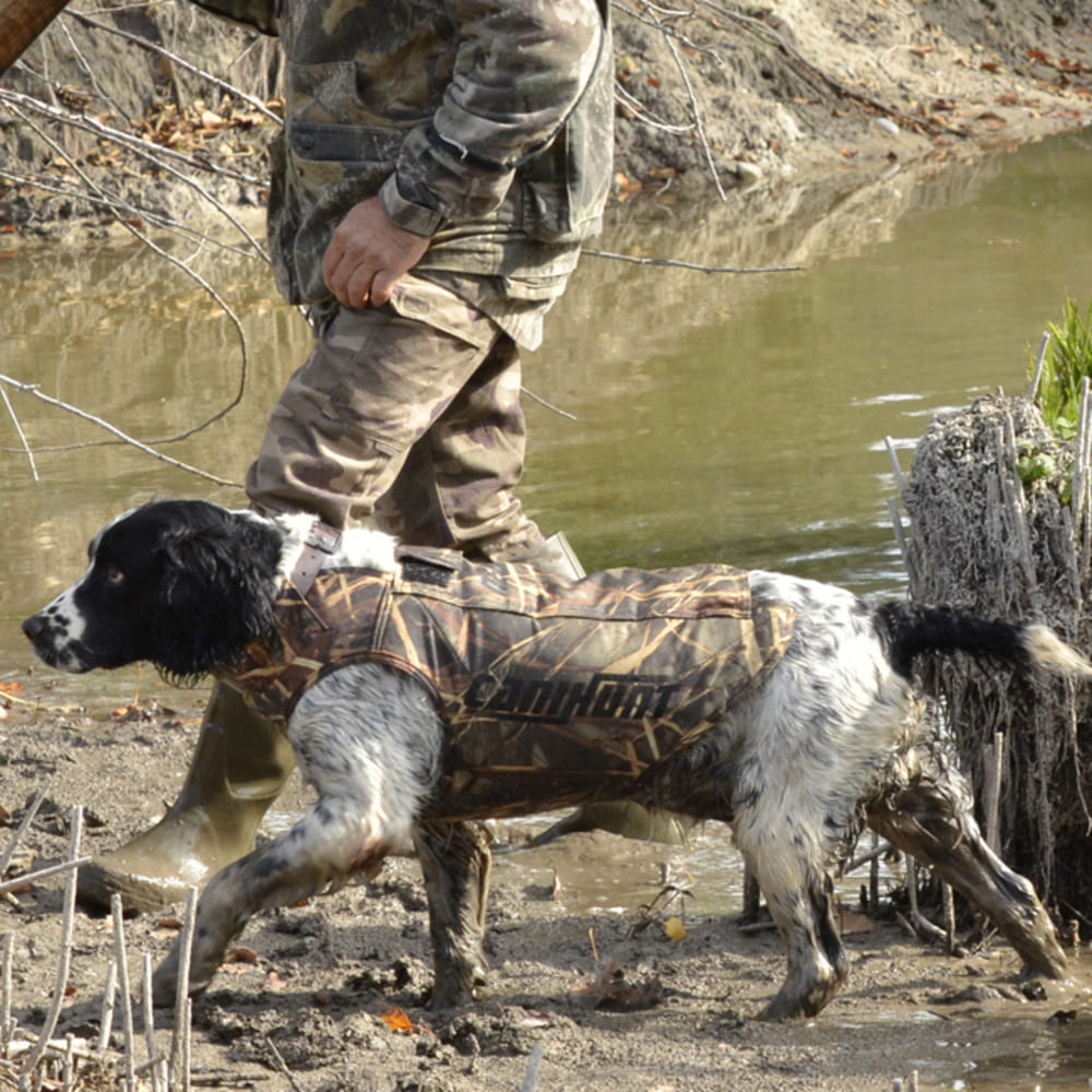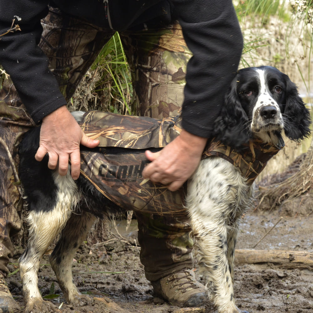 Das exklusive Schilf-Tarnmuster macht deinen Hund bei der Wasserjagd nahezu unsichtbar und erhöht so den Jagderfolg. -