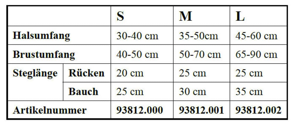 Brustumfang: | 40 cm - 90 cm |