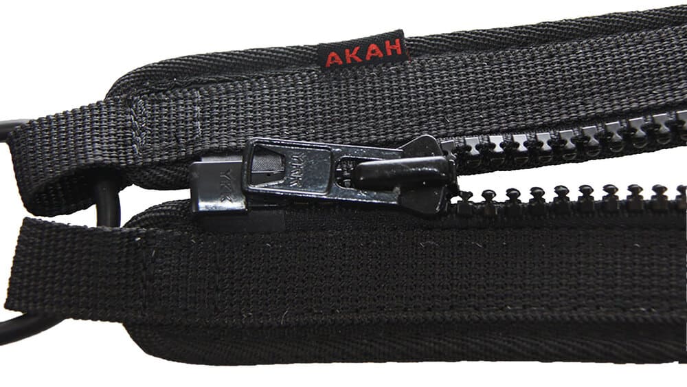 Mit geöffnetem Reißverschluss wird der Riemen schmaler (3,5 cm) und eignet sich optimal als Rucksackgewehrriemen. - Praktisches Blitzsystem