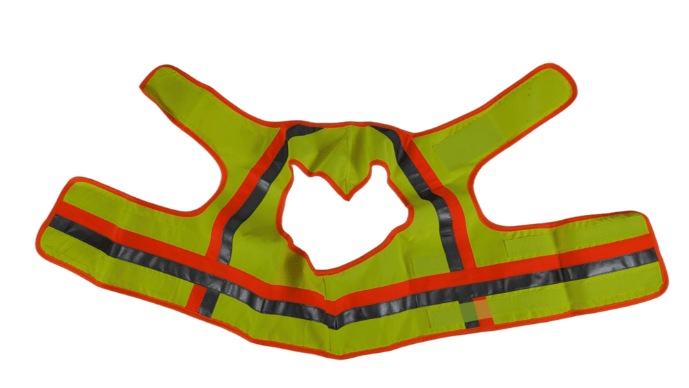 Signalgelbe Fläche kombiniert mit signalroten und reflektierenden Streifen sorgt für dreifache Signalwirkung, damit dein Hund auch aus der Ferne gut erkennbar ist. -