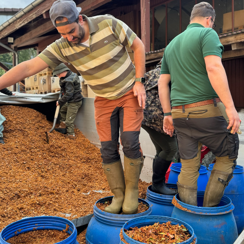 Wir stampfen noch von Hand bzw. mit dem Fuß ;) Jagdkollegen von uns besitzen einen Unimog und haben hier eine Pressvorrichtung gebaut, was natürlich super praktisch ist. Aber ein bisschen Stampfsport hat noch niemandem geschadet.