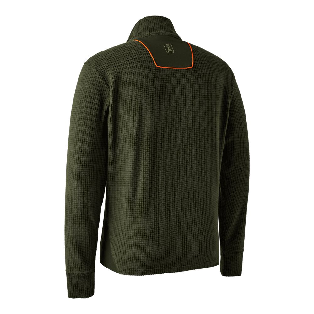 Die Deerhunter Chamois Full-Zip Fleecejacke in Grün mit markanten orangefarbenen Details ist der ideale Begleiter für Outdoor-Abenteuer und Jagdeinsätze. Sie kombiniert Wärme, Bewegungsfreiheit und praktische Features in einem modernen Design.