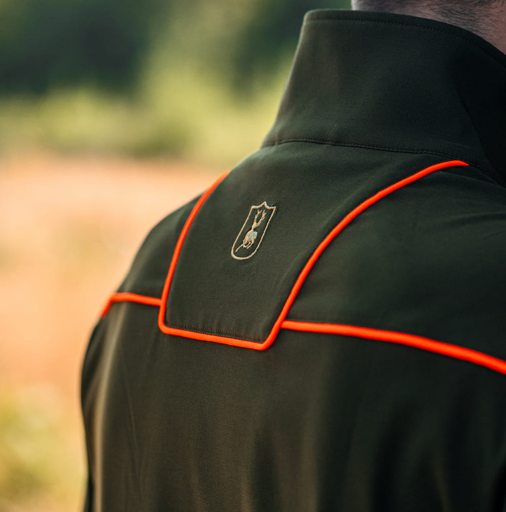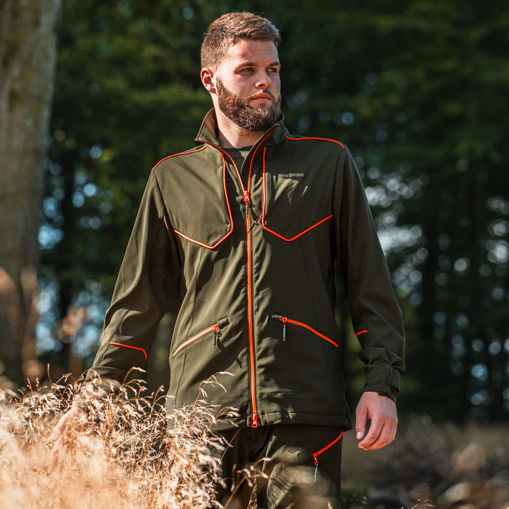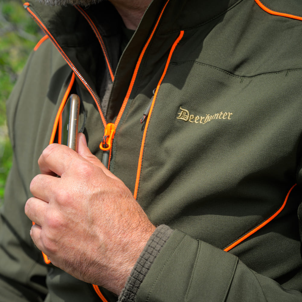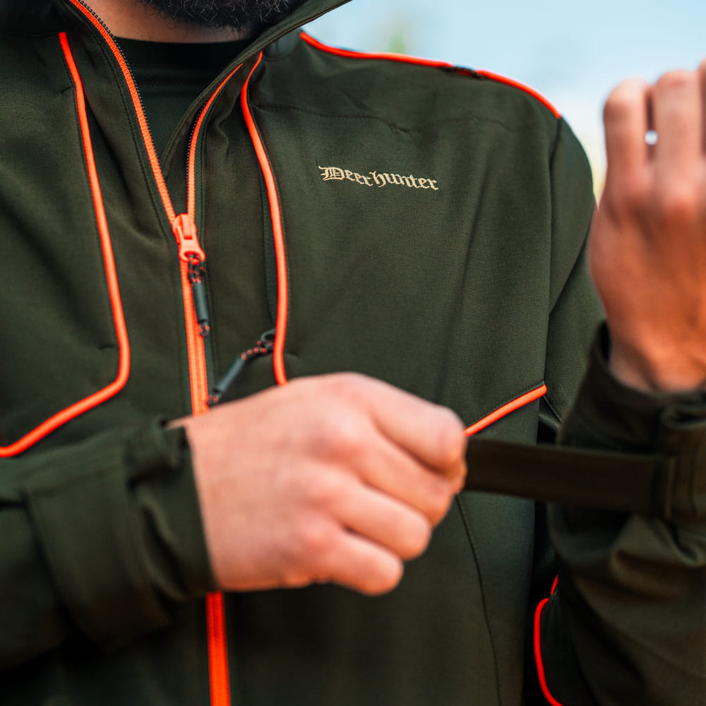 Die Deerhunter Chamois Jacke in Grün mit markanten orangefarbenen Details bietet dir hohen Tragekomfort, optimale Bewegungsfreiheit und praktische Features – perfekt abgestimmt auf die Bedürfnisse anspruchsvoller Jäger.