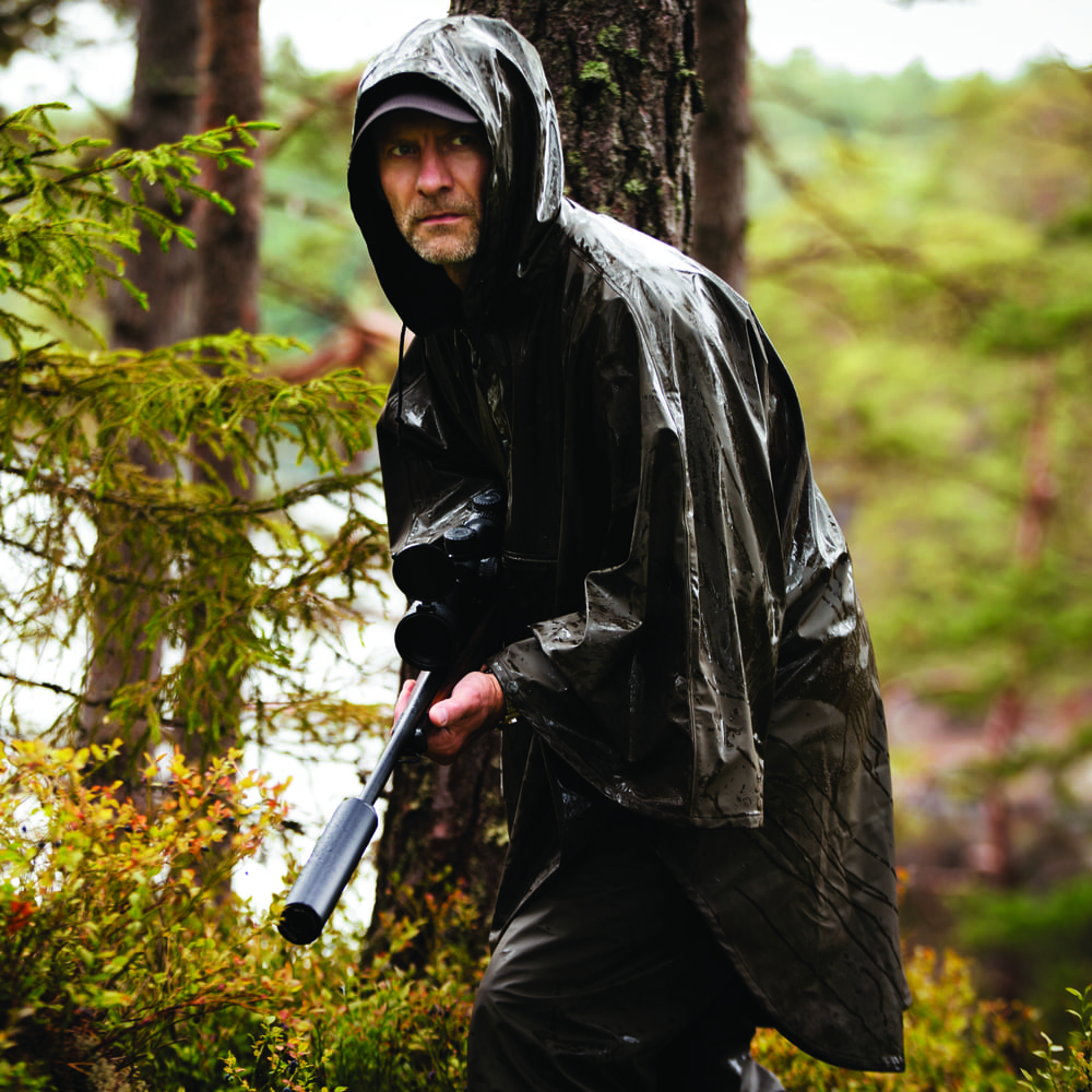 Mit dem Deerhunter Hurricane Regen Poncho bist du bestens gerüstet für jedes Wetter im Revier – trocken, flexibel und einsatzbereit.