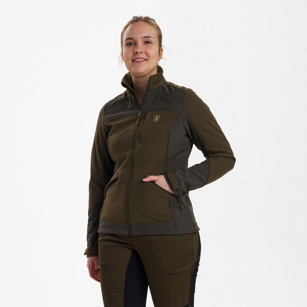 Entdecke die Lady Roja Softshelljacke von Deerhunter, die dich bei jeder Jagd zuverlässig trocken hält und gleichzeitig maximale Bewegungsfreiheit bietet.
