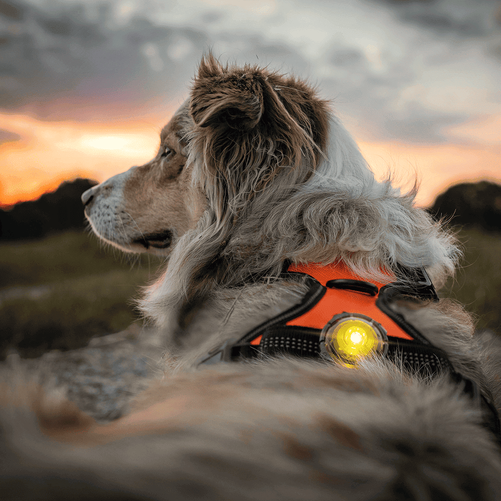 Mit einem Gewicht von nur 19 g und den Maßen 35 mm x 20 mm ist das Safety Light besonders kompakt und leicht – es beeinträchtigt weder den Hund noch das Training. -