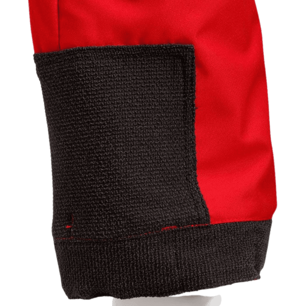 - Wasserdichter Oberstoff: Der vordere Beinbereich bis über das Knie und bis in den hinteren Wadenbereich ist mit einem wasserdichten Oberstoff versehen, der verhindert, dass sich die Hose mit Nässe vollsaugt.