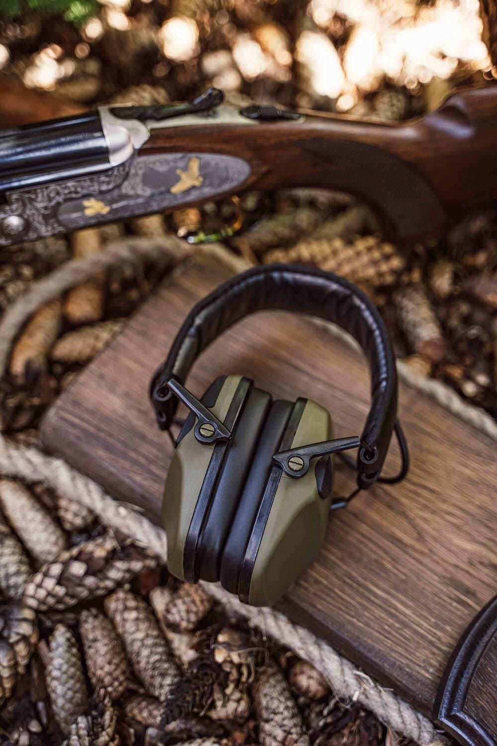Die Farbe besteht aus einem schwarzen Kopfband und einer gummierten OD-grünen Beschichtung. Mit einer Schalldämmung von 27 dB bieten die Gehörschützer exzellenten Schutz. Sie werden mit 2 AA-Batterien betrieben und sind bereit für den Einsatz bei jeder Jagd.