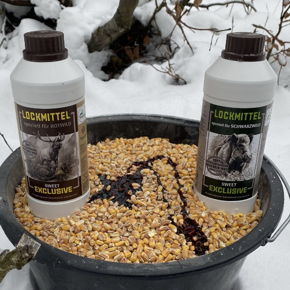 Setze auf Sweet Exclusive von Wildlutscher, um deine Schwarzwildjagd noch erfolgreicher zu gestalten und Wild sicher an deine Futterstellen zu bringen.
