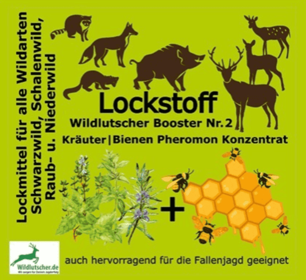 Mit dem Wildlutscher Booster Kräuter / Bienen Pheromone Konzentrat nutzt du ein bewährtes und hochwirksames Lockmittel, das seit mehr als 8 Jahren in der Jagdpraxis erfolgreich eingesetzt wird. Es zieht Schalenwild, Schwarzwild und Raubwild über große Entfernungen an und bindet es zuverlässig an deinen Jagdplatz.